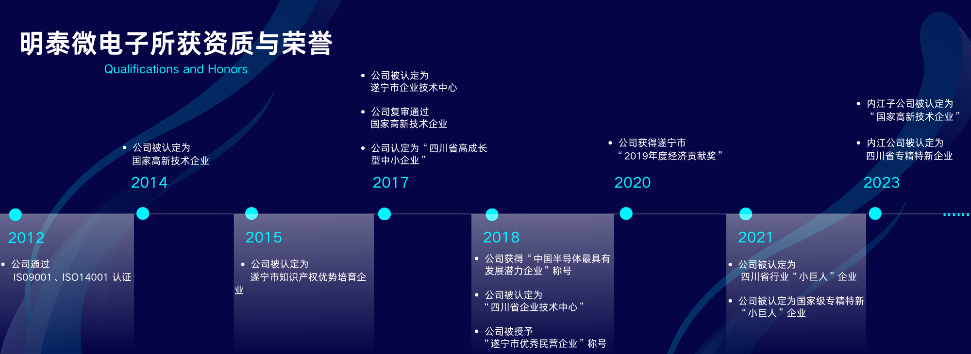 我司成立于2010年,于2014年被認定為國家高新技術企業、十余年間陸續獲評四川省企業技術中心、四川省高成長型中小企業、行業“小巨人”企業、知識產權培育優勢企業、優秀民營企業、經濟發展貢獻獎等多項榮譽稱號。2021年9月被國家工業和信息化部認定為國家專精特新“小巨人”企業。